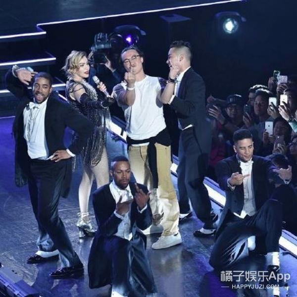 显然,天后不认识这个跑上台来的亚洲小伙儿,不过该调戏调戏,什么贴面热聊啦