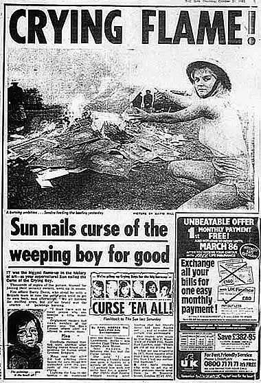 《哭泣的男孩》从画上看过去就是一个小男孩留着眼泪,但它到底能引发什麽事件呢?据说如果你把这幅画挂在家中,过没多久你家里就会发生火灾,但画跟挂画的墙却完好如初。