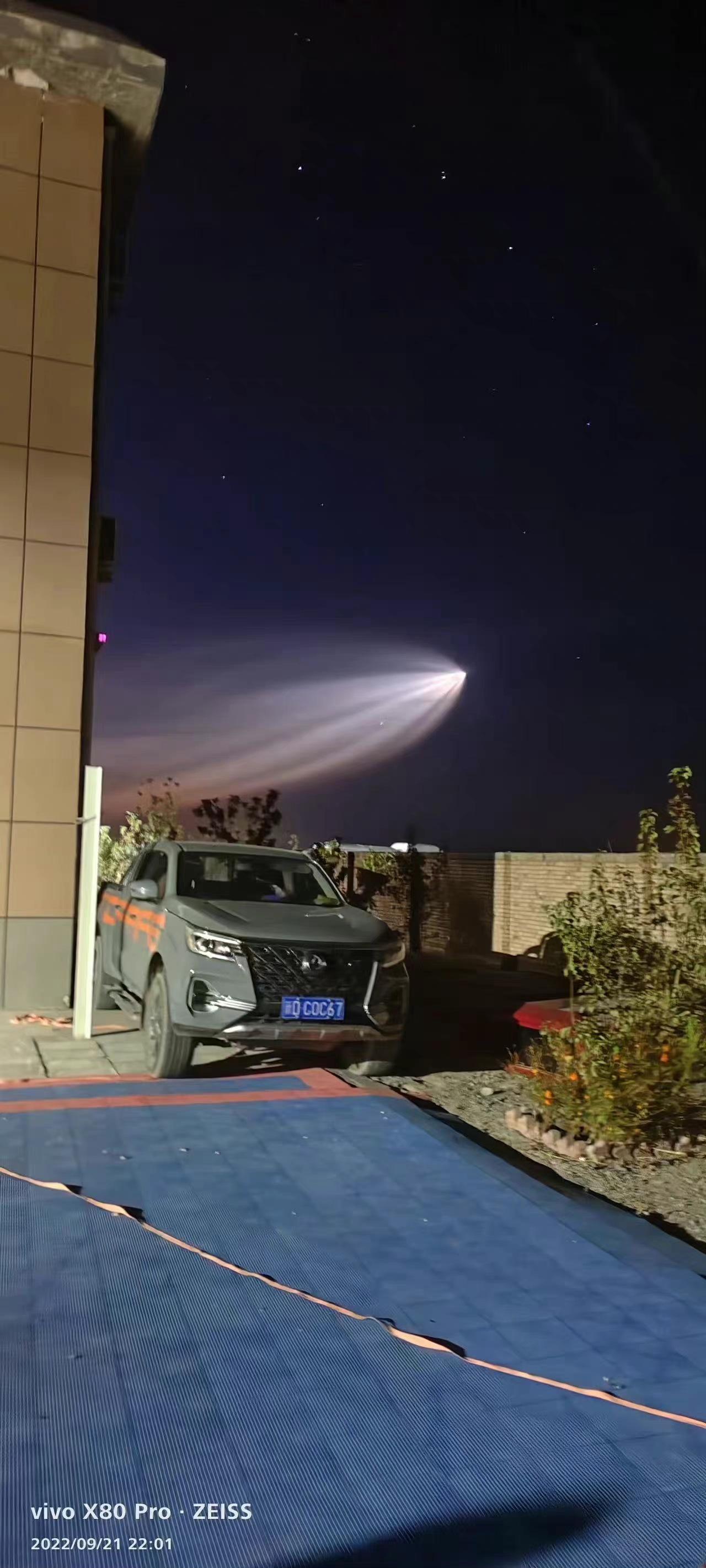 多个社交媒体上都出现了9月21日夜间的猛图,一个巨大的光斑出现在了新疆上空,尖端还在不停移动,看着实在是太震撼了!