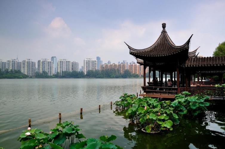 莫愁湖是一座有着1500年悠久历史和丰富人文资源的江南古典名园,为六朝胜迹, 园内楼、轩、亭、榭错列有致,堤岸垂柳,海棠相间,湖水荡漾,碧波照人。胜棋楼、郁金堂、赏河厅、水榭、抱月楼、光华亭、曲径回廊等掩映在山石松竹、花木绿荫之中,一派“欲将西子莫愁比,难向烟波判是非。