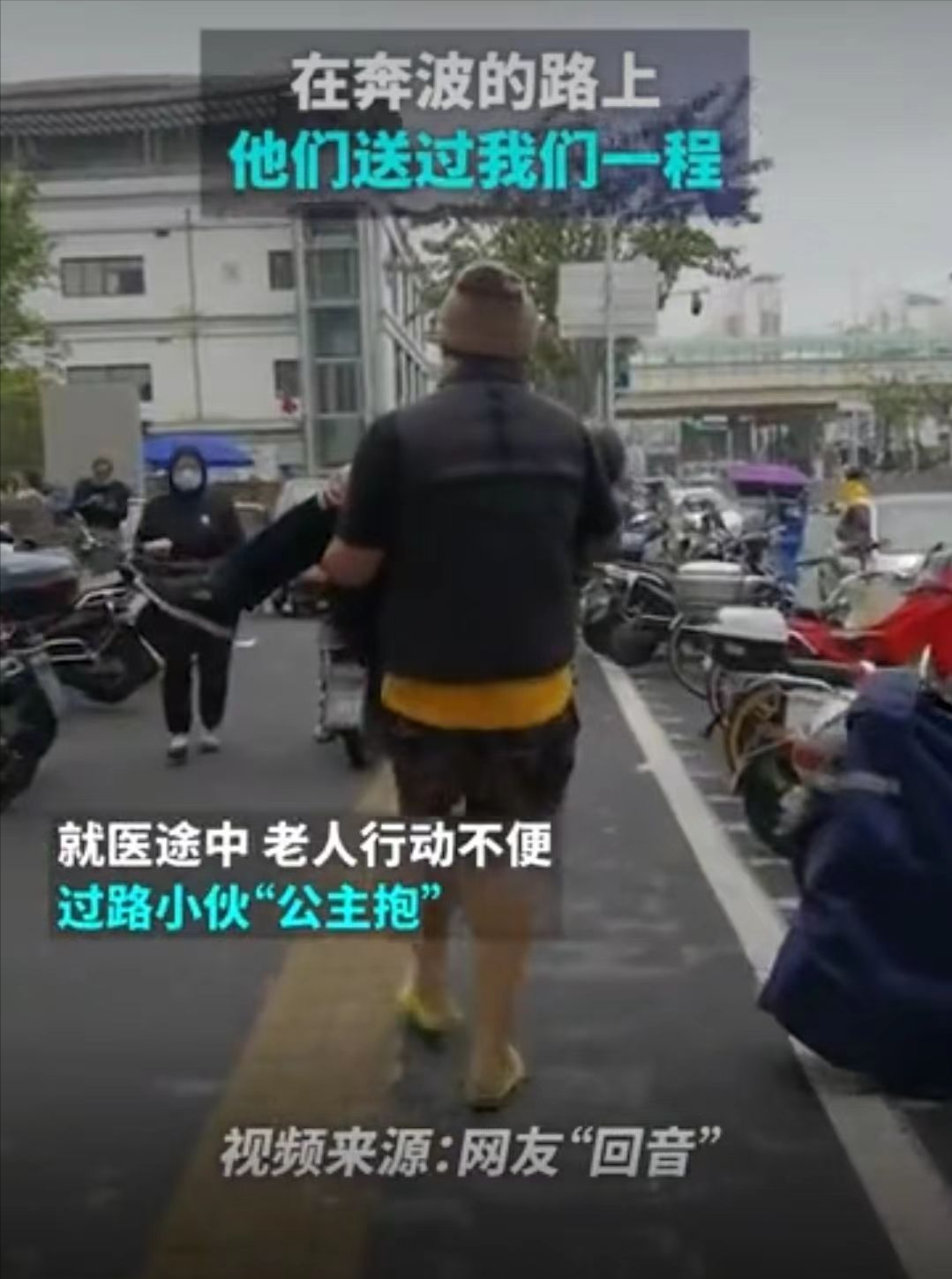 路过的小伙看见,直接“公主抱”,把老人送进了医院。