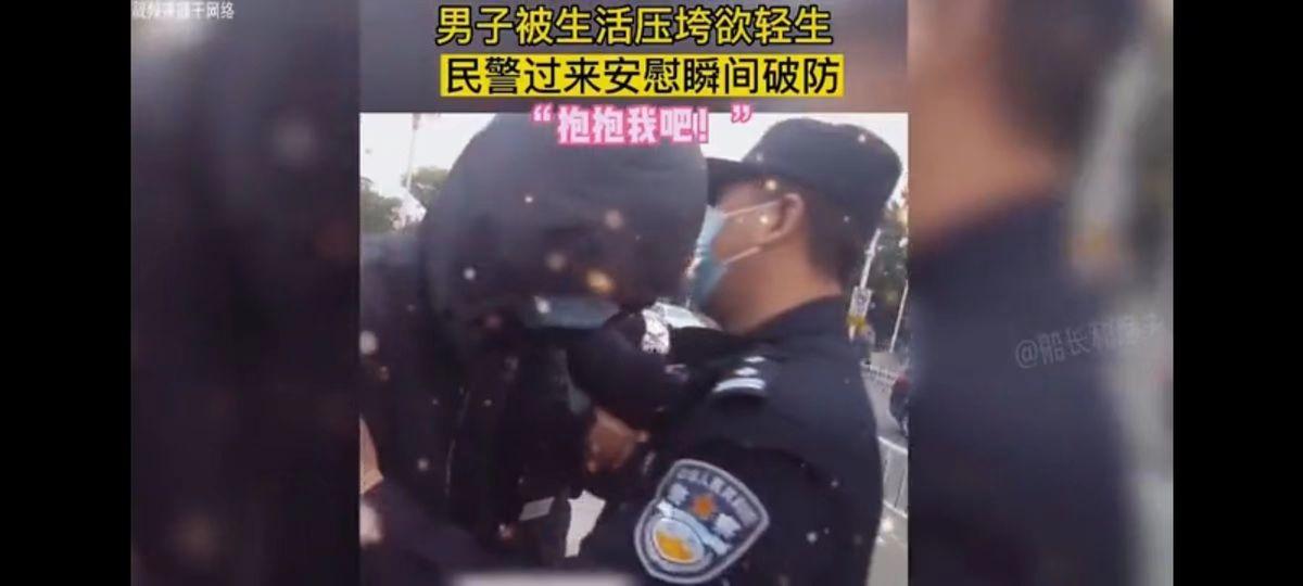 民警紧紧地拥抱这个泪流满面的汉子。