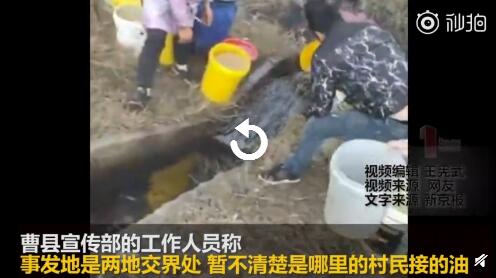 11月13日,山东菏泽,日兰高速曹县段上,一辆拉载食用油的罐车在高速被追尾后,大量豆油泄露。目击者称,事故发生后大量村民赶来,用桶将沟渠中的食用油接走,有不下一百人。周边村民介绍,有人将食用油接回家后,经过滤、加热后食用,曹县宣传部的工作过人员称,事发地是两地交界处,暂不清楚是哪里的村民接的油。